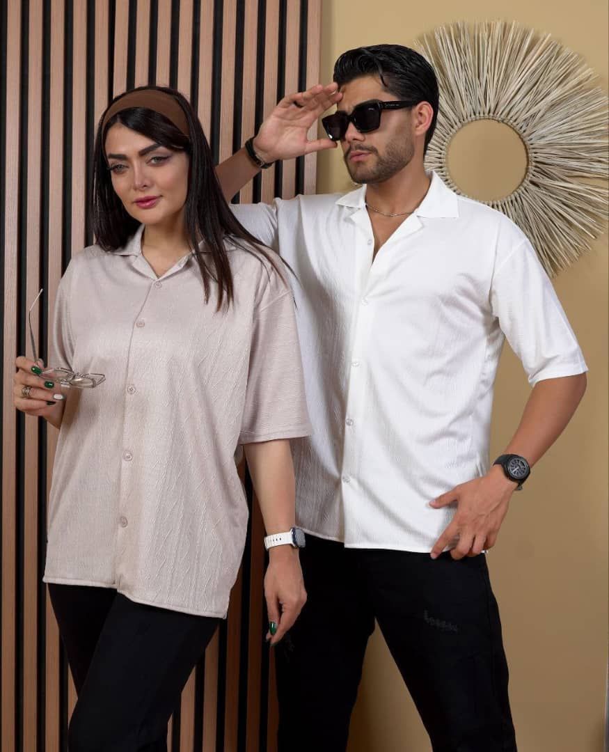 پیراهن مراکشی آستین کوتاه دکمه دار مردانه و اسپرت