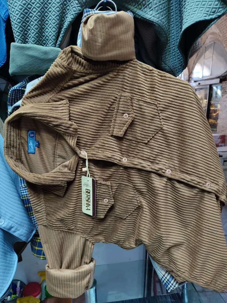 پیراهن مردانه یقه دار آستین بلند مخمل کبریتی گرم بالا